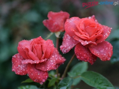 Puzzle Krople, Czerwone, Róże, Deszczu
