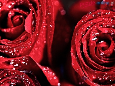 Puzzle Krople, Czerwone, Róże, Rosy