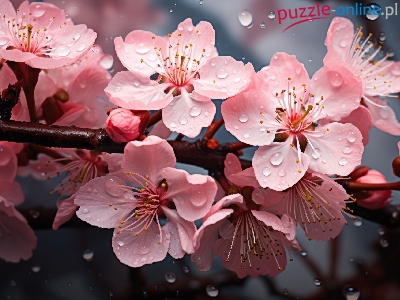 Krople wody, Wiosna, Pąki, Drzewo owocowe, Różowe, Kwiaty, Gałązka