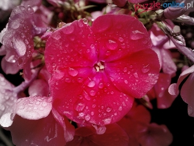 Puzzle Krople, Floks, Różowy, Deszczu