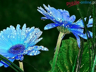Puzzle Krople, Niebieskie, Rumianki, Deszczu