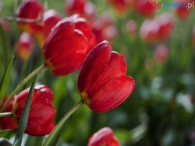 Puzzle Krople, Czerwone, Tulipany, Wody
