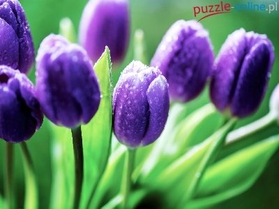 Puzzle Krople, Fioletowe, Tulipany, Deszczu