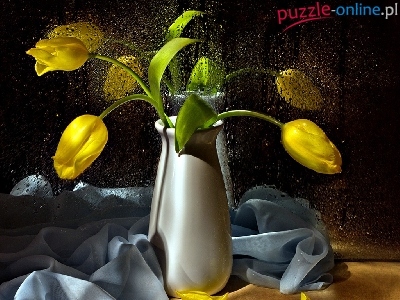 Puzzle Krople, Żółte, Tulipany, Wody