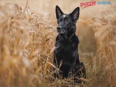 Pies, Owczarek niemiecki krótkowłosy, Czarny, Zboże, Pole