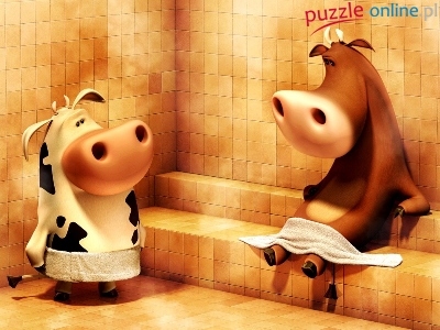 Puzzle Byczek, Krówka, Sauna
