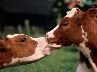 Puzzle Krowy, Dwie, Łaciate, Pocałunek