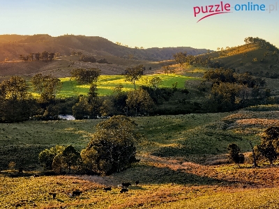 Puzzle Drzewa, Pole, Wzgórza, Krowy