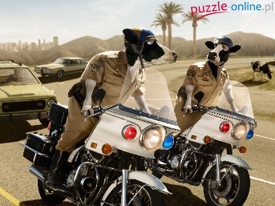 Krowy, Motory, Droga, Samochody, Policja