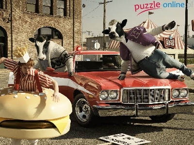 Puzzle Krowy, Samochód, Ubrane, Hamburger