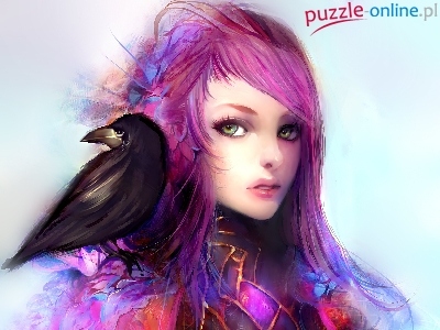 Kruk, Kolor, Fantasty, Kobieta, Włosy