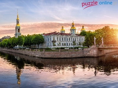 Petersburg, Cerkiew, Wschód słońca, Sobór św. Mikołaja i Objawienia Pańskiego, Most, Rosja, Kanał Kryukowski, Drzewa