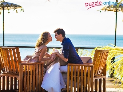 Puzzle Krzesła, Zakochani, Stolik, Morze