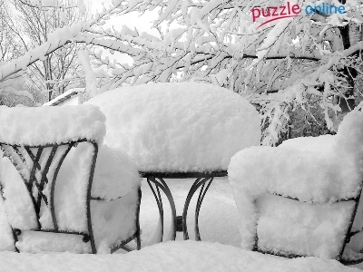 Puzzle Krzesła, Zima, Stolik, Śnieg