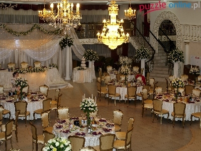 Puzzle Krzesła, Restauracja, Stoły, Żyrandole
