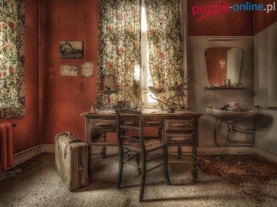 Krzesło, Wnętrze, Okna, Retro, Biurko, Walizka