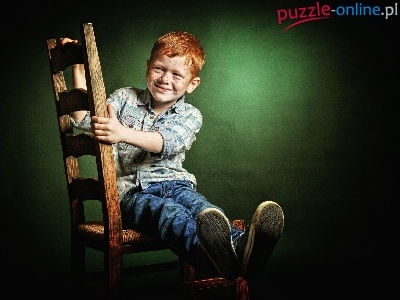 Puzzle Krzesło, Rudy, Chłopiec, Uśmiech