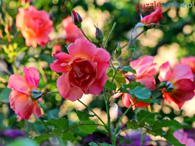 Puzzle Krzew, Różowe, Róże, Przebijające Światło