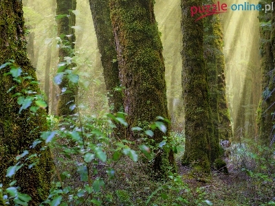 Puzzle Krzewy, Słońca, Las, Drzewa, Promienie