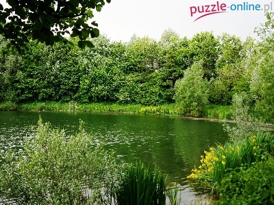 Puzzle Krzewy, Rzeka, Drzewa, Kwiaty