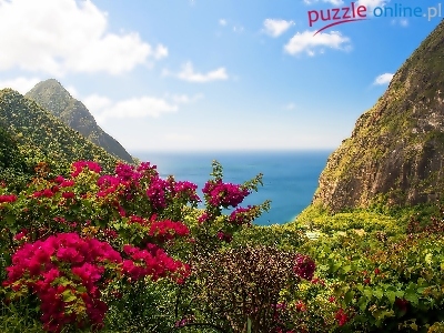 Puzzle Krzewy, Góry, Morze, Kwiaty