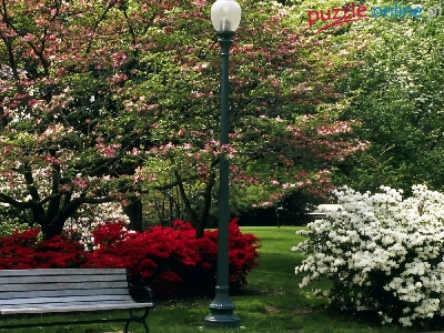 Park, Krzewy, Ławeczka, Drzewa, Central, Kwitnące, Latarnia