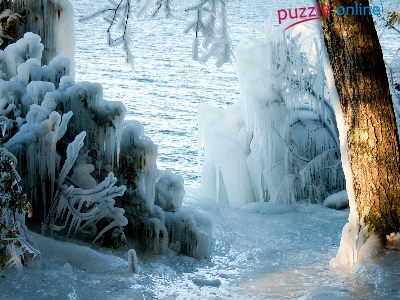 Krzewy, Zima, Jeziora, Zamarznięte, Lód