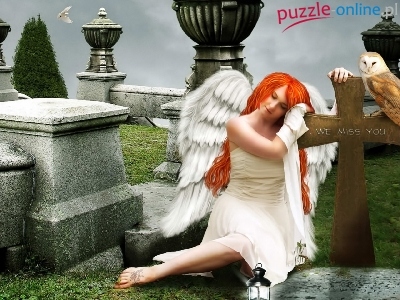 Puzzle Krzyż, Kobieta, Anioł, Trawa
