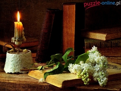 Puzzle Książka, Biały, Bez, Świeca