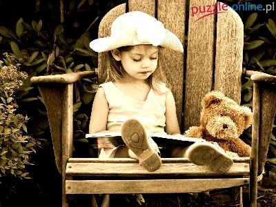 Puzzle Książka, Dziewczynka, Krzesło, Miś