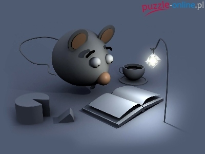 Książka, Lampka, 3D, Myszka, Filiżanka