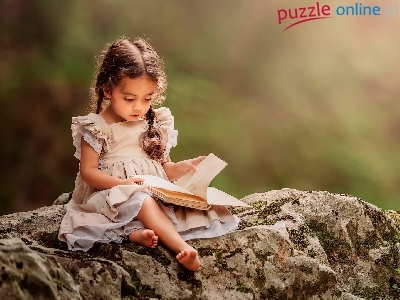 Puzzle Książka, Dziewczynka, Warkocze, Kamień
