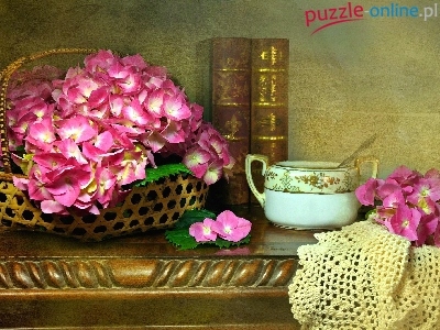 Puzzle Książki, Hortensja, Koszyk, Kompozycja