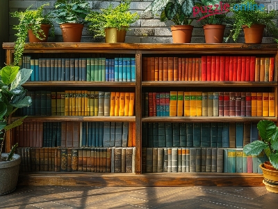 Puzzle Rośliny, Książki, Regał, Grafika AI