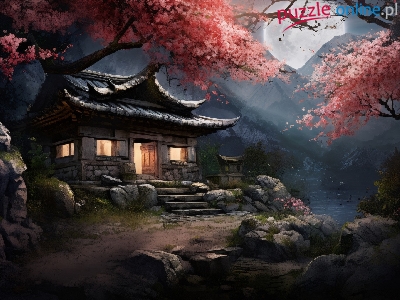 Puzzle Góry, Dom, Drzewa, Księżyc