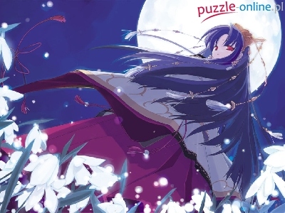 Puzzle księżyc, dziewczyna, przebiśniegi, Tsukuyomi Moon Phase
