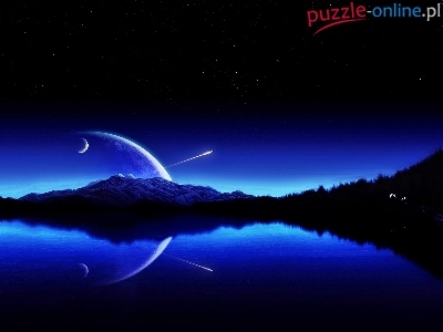 Puzzle Księżyc, Niebo, Nocą, Jezioro