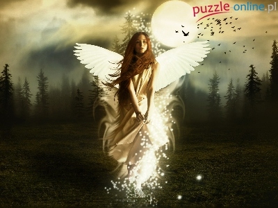 Puzzle Księżyc, Kobieta, Skrzydła, Las