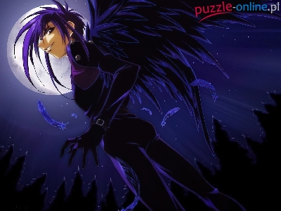 skrzydła, księżyc, D N Angel, ciemno, pióra