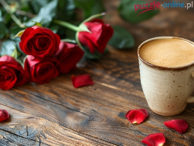 Puzzle Kawa, Kwiaty, Róże, Kubek