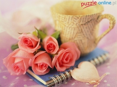 Kubek, Serduszko, Różowe, Różyczki, Notes
