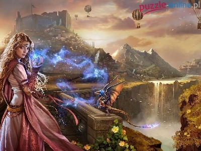 Góry, Kula, Smok, Czarodziejska, Kobieta, Zamek, Balony