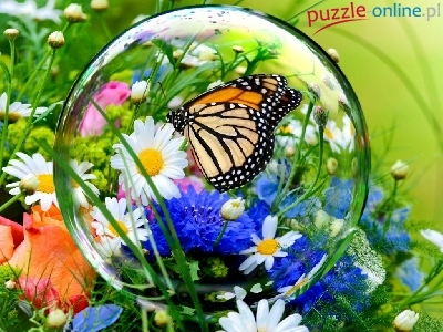 Puzzle Kula, Kompozycja, Kwiatowa, Motyl