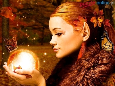 Kula, Elf, Liście, Kobieta, Szklana, Motyle