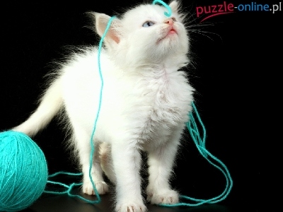 Puzzle Kulka, Kotek, Biały, Włóczki
