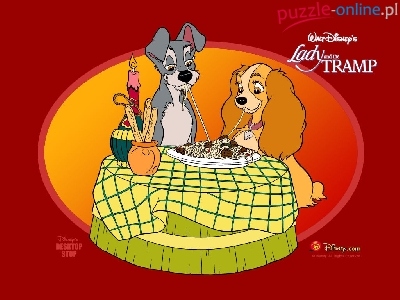 Bajka, Film animowany, Zakochany kundel II Przygody Chapsa Zakochany Kundel, spaghetti Zakochany kundel, Ucieczka, Lady and the Tramp Lady and the Tramp, Zwierzęta, Świeca, Psy, Film, Zakochany kundel, Stolik