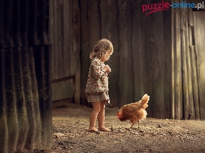 Puzzle Kura, Dziecko, Dziewczynka, Szopa
