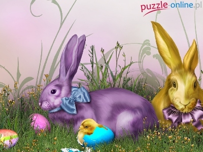 Puzzle Kurczaczek, Wielkanoc, Pisanki, Trawa