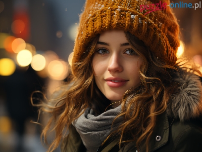 Puzzle Czapka, Kobieta, Spojrzenie, Kurtka