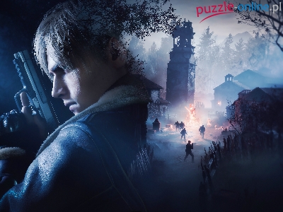 Mężczyzna, Resident Evil 4, Gra, Postać, Kurtka, Osada, Ogień, Leon, Pistolet